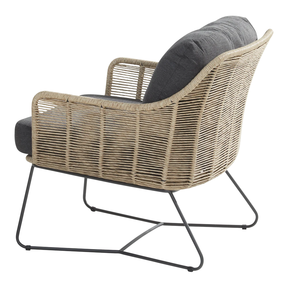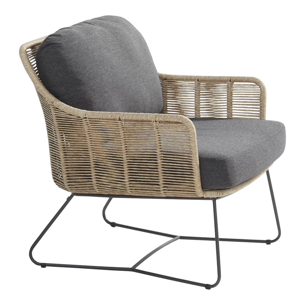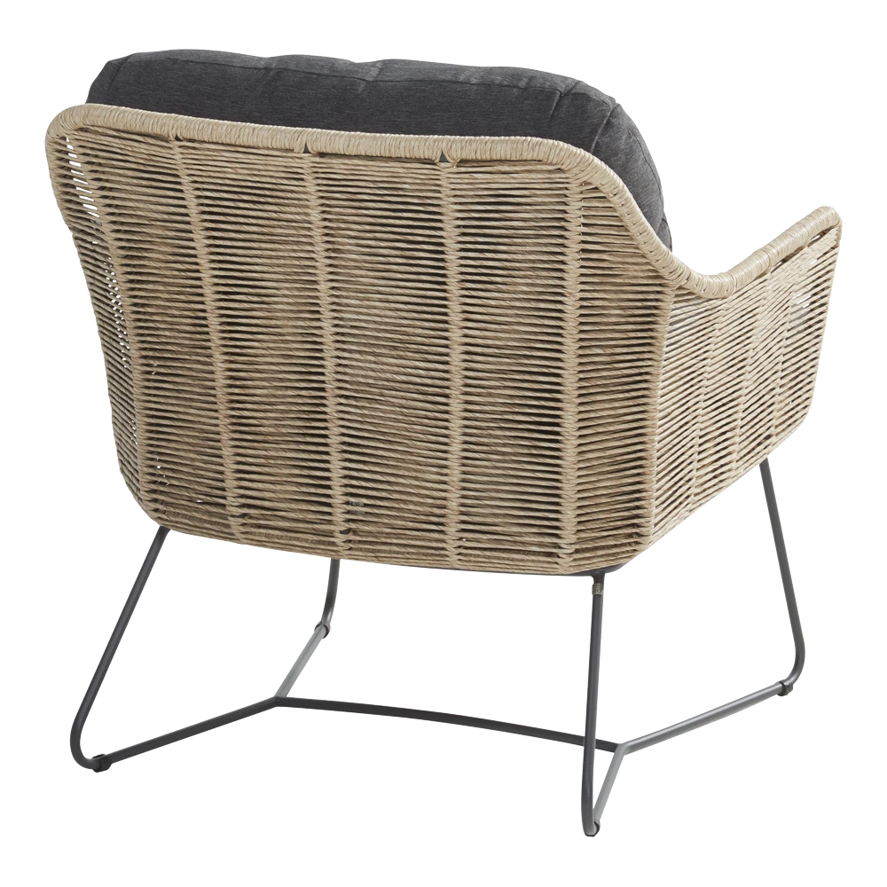 De Taste by 4 Seasons Outdoor Belmond Loungestoel is een comfortabele loungestoel voor buiten. De Belmond loungestoel is gemaakt van RVS in de kleur antraciet met een naturel kleurig wicker afwerking. Deze loungestoel leveren wij inclusief gevulde zit- en rugkussen, de kussens zijn afritsbaar waardoor ze eenvoudig koud te wassen zijn. De All weather kussens zijn gemaakt van hoogwaardige kwaliteit, waardoor ze het gehele seizoen buiten kunnen liggen. Ook is deze Belmond Loungestoel onderdeel van de Belmond loungeset welke je kunt uitbreiden met deze enkele loungestoel.