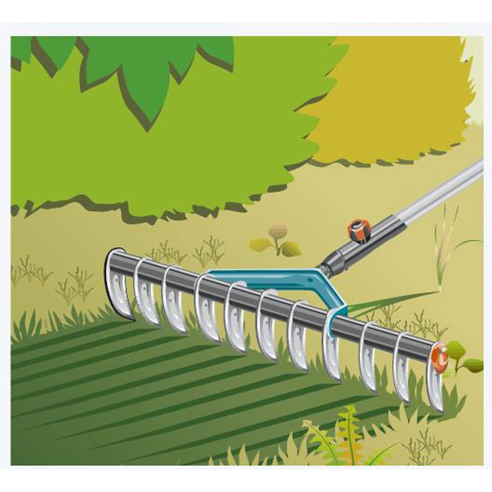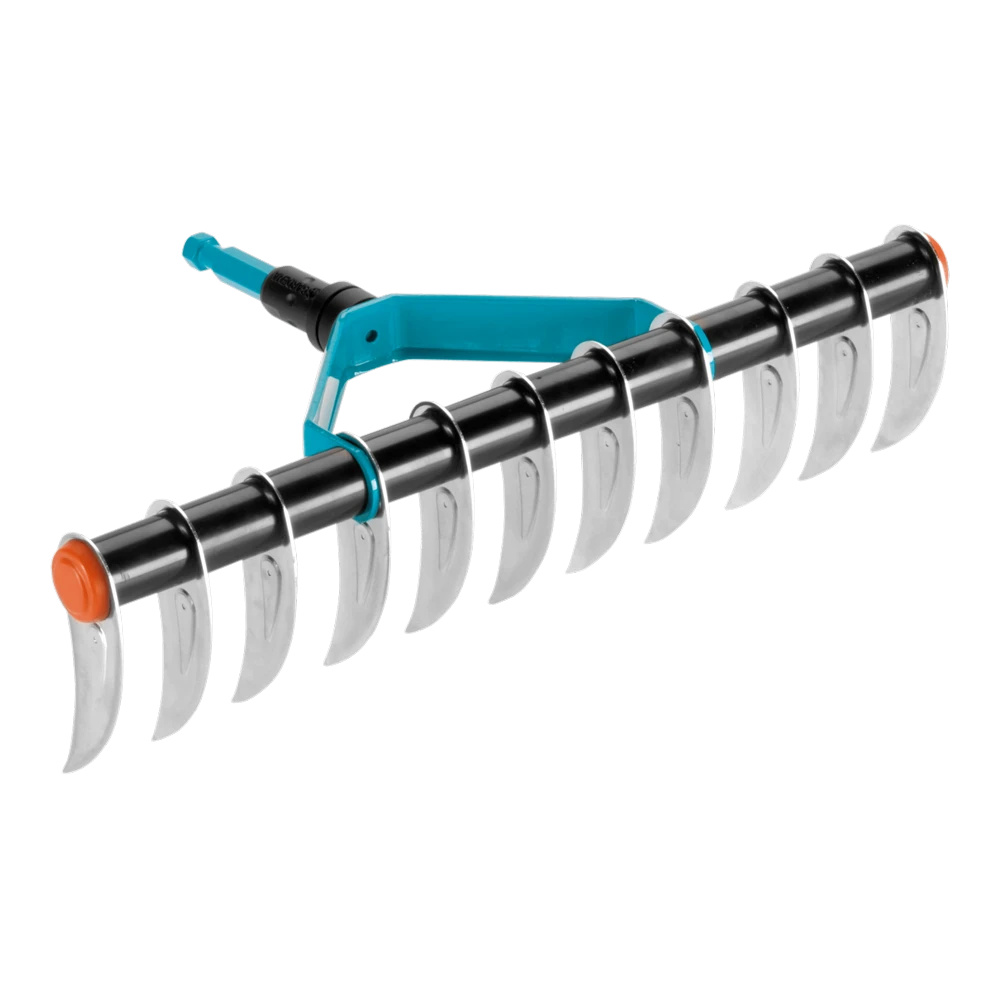 Met de GARDENA combisystem-eenzijdige verticuteerhark kunt u mos en gazonvilt voorzichtig uit het gazon verwijderen en daardoor de opname van lucht, water en voedsel verbeteren. Met zijn verzinkte en geperste tanden en een werkbreedte van 35 cm is deze hark ook prima geschikt voor het fijner maken van aarde en egaliseren. De eenzijdige verticuteerhark is geschikt voor alle stelen van het GARDENA combisystem, waarbij GARDENA een steellengte van 180 cm adviseert, afhankelijk van uw lichaamslengte. Tip: het harken van het gazon is een vorm van onderhoud die het hele jaar, na elke tweede of derde keer maaien, kan worden uitgevoerd.