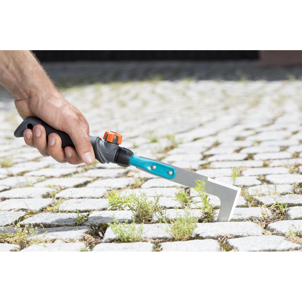 De GARDENA combisystem voegenkrabber is het ideale hulpmiddel voor het verwijderen van mos en onkruid tussen stenen en langs wandranden. Het geslepen, dubbelzijdig mes is gemaakt van roestbestendig, gehard roestvrijstaal. De ergonomisch gevormde handgreep met zacht component past perfect in de hand. Gebruik een combisystem steel om comfortabe te werken zonder te hoeven bukken. De voegenkrabber is veilig op te bergen dankzij de mesbescherming.