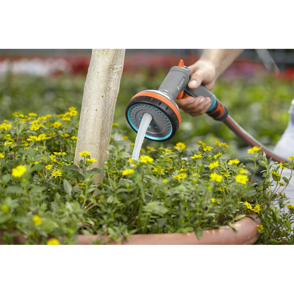 De Gardena comfort multi broes is ideaal voor diverse bewaterings- en reinigingsklussen. Bij deze broes is de waterstraal instelbaar in vijf standen. De nevelstraal is perfect voor het bewateren van zaaigoed. De zachte straal of broesstraal zorgt ervoor dat de bloembedden goed kunnen worden bewaterd. De harde straal is voor reinigingswerkzaamheden. De softgrip componenten zorgen voor een slipvaste grip op de comfort multibroes. De ergonomisch vormgegeven impulshendel kan met de geïntegreerde knop worden vastgezet. De waterstraal is met 1 vinger traploos in te stellen. Een geïntegreerd filter zorgt er voor dat er geen vuil in de broes zelf kan komen. Dit filter kan eenvoudig worden losgehaald en gereinigd. De broes is vorstbestendig en daardoor ook bestand tegen temperaturen onder het vriespunt.