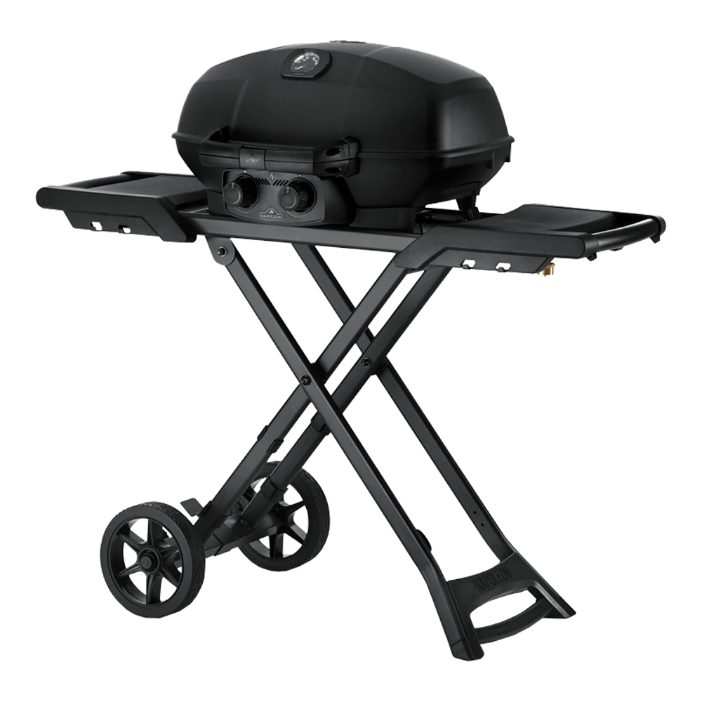 Met zijn praktische zijtafels met bestek en handdoek haken, biedt het solide onderstel plaats voor voorbereidingen en accessoires. Met de grote wielen laat de PRO285X zich ingeklapt praktische transporteren of ophangen aan de wand om plaats te besparen.