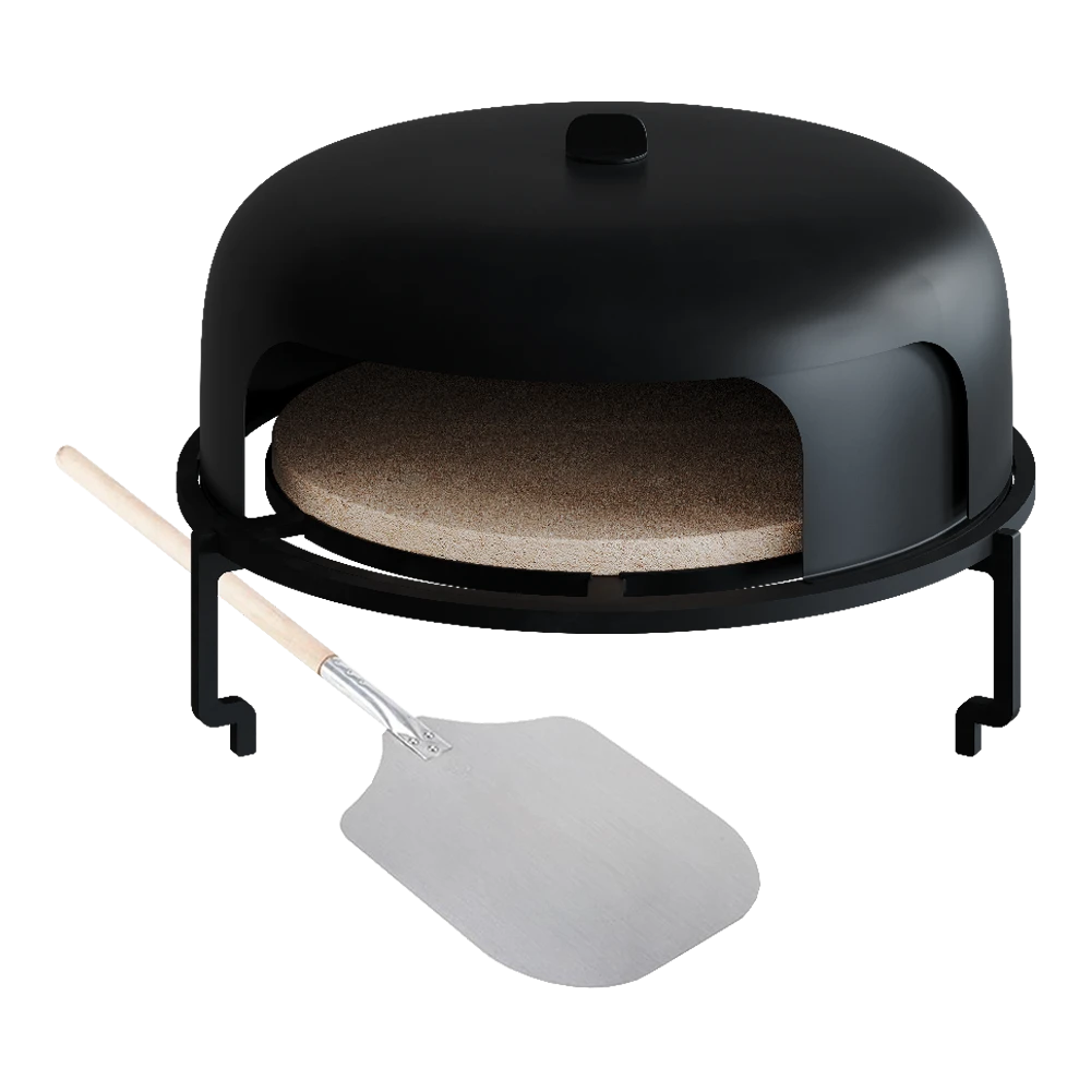 • Verhit de pizzaoven met de hitte die uit de zijkanten van de kegel komt voor een optimale