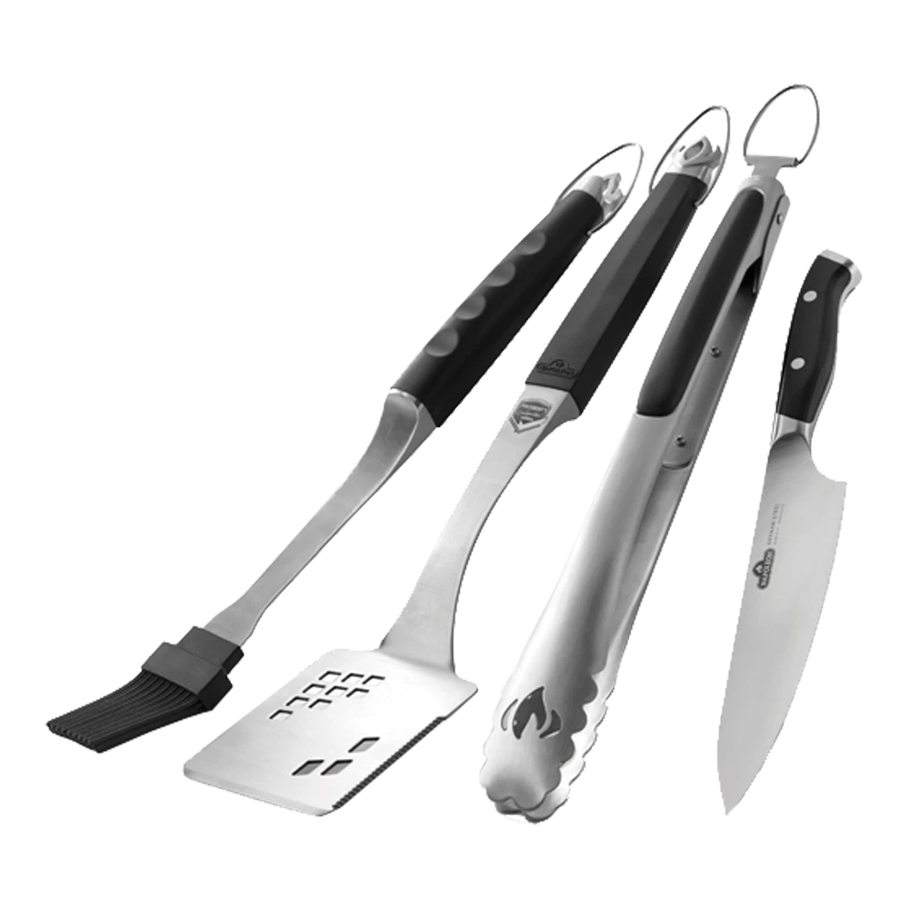 Het Napoleon® vierdelig President´s Limited Edition barbecue gereedschapset, in hoogwaardig design, RVS met zwarte steel.