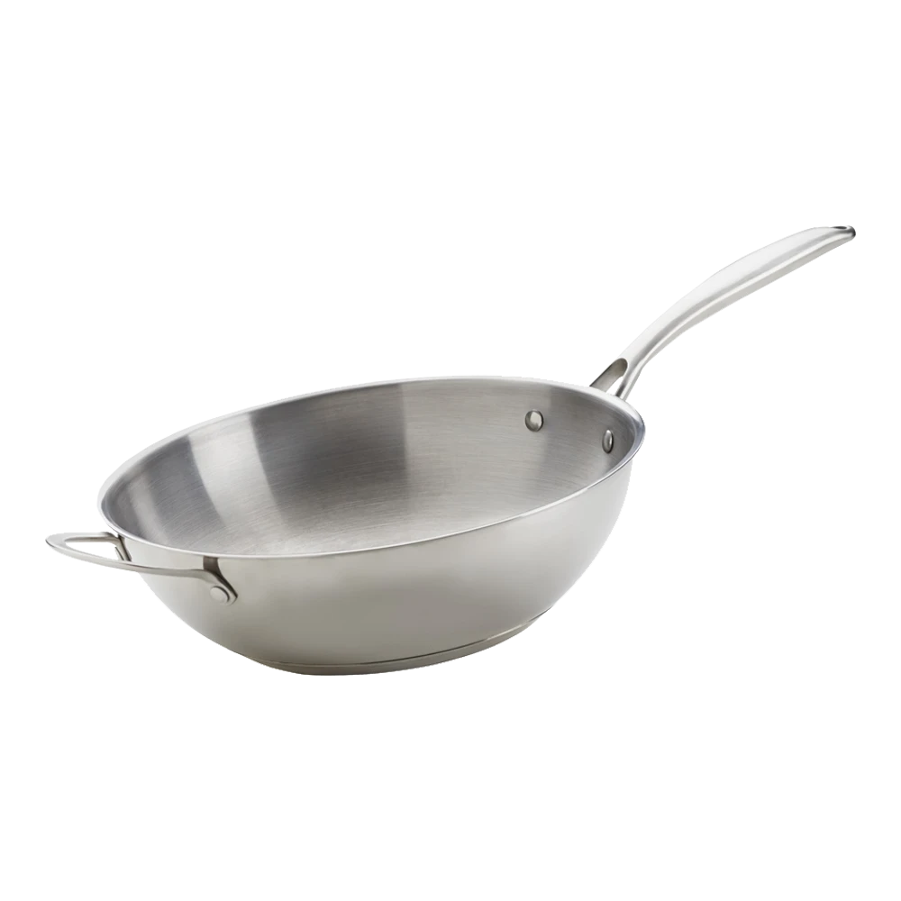 RVS Wok ca. 30,5 cm Ø en lange steel, past perfect op de power-zijbrander van de PRO825. Dankzij de vlakke bodem ook geschikt voor kookplaten, ook voor inductietoestellen.