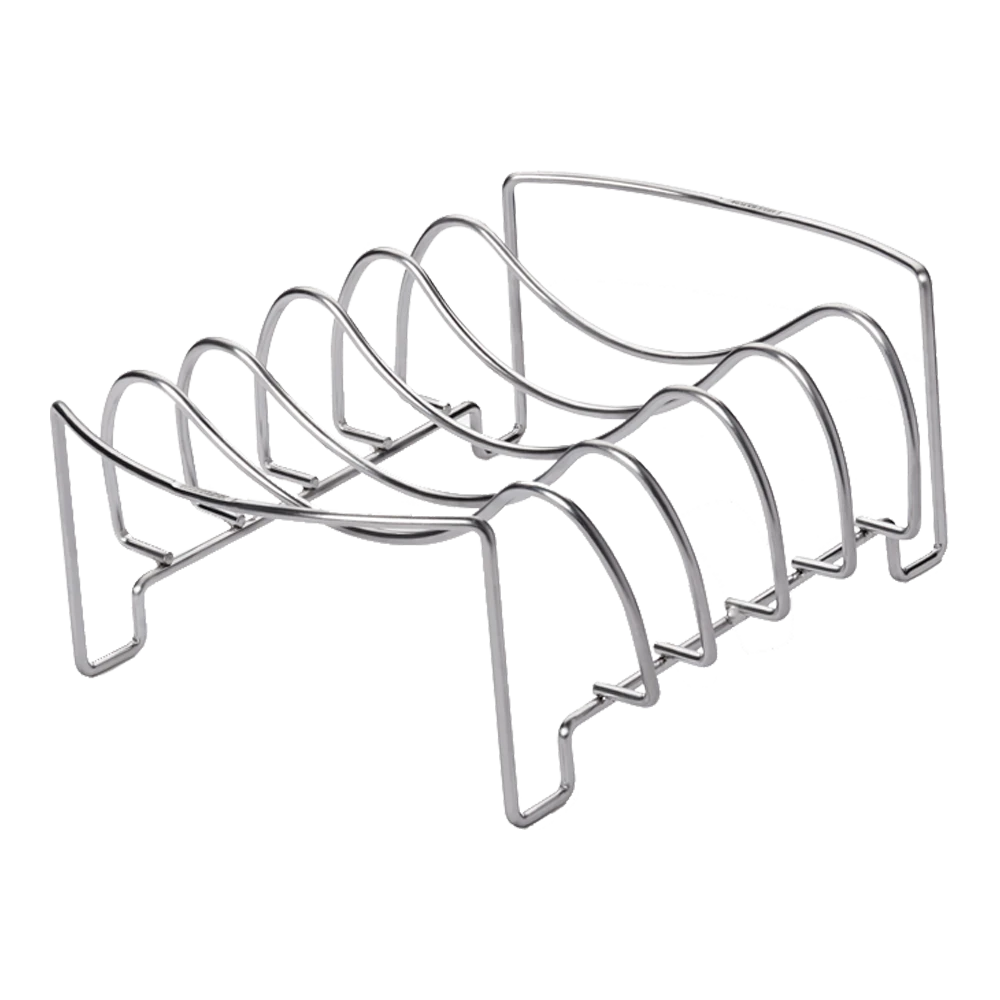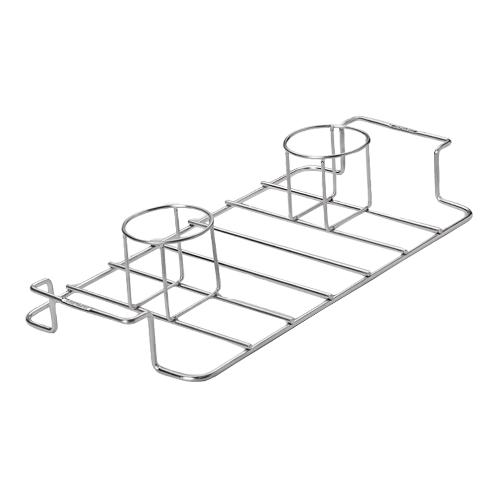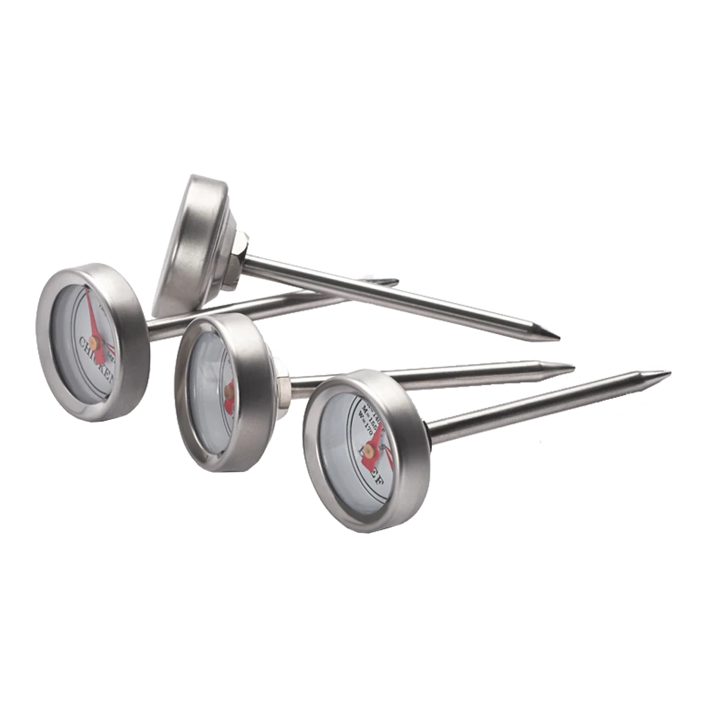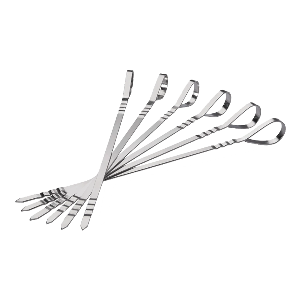 Starter set vleesliefhebber. Inhoud: 1 RVS braadstuk- & ribbenhouder, 1 RVS dubbele- bierbilk/kiphouder, 6 RVS spiesen (33,5 cm lang), 4 zakthermometers, presentatie display.