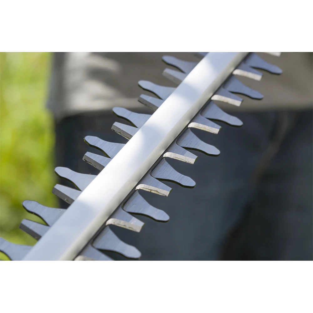Met de elektrische telescopische heggenschaar THS 500/48 kunt u zonder ladder probleemloos hoge heggen snoeien. Door de uitschuifbare telescoopsteel snoeit u de heg, terwijl u veilig met beide voeten op de grond staat. Om in de juiste positie te snoeien, kunt u de kop kantelen. Zo kunt u ook de bovenkant van de heg nauwkeurig en comfortabel snoeien. Bij het snoeien van bodembedekkers ontziet u uw rug, omdat u niet hoeft te bukken.