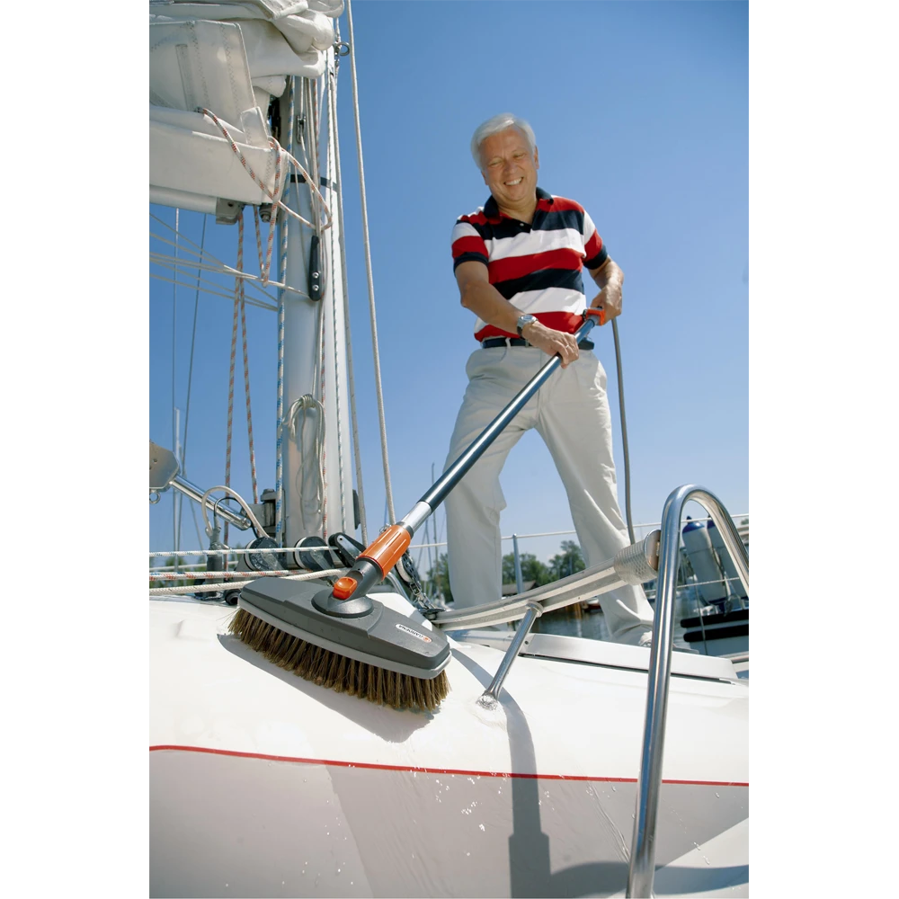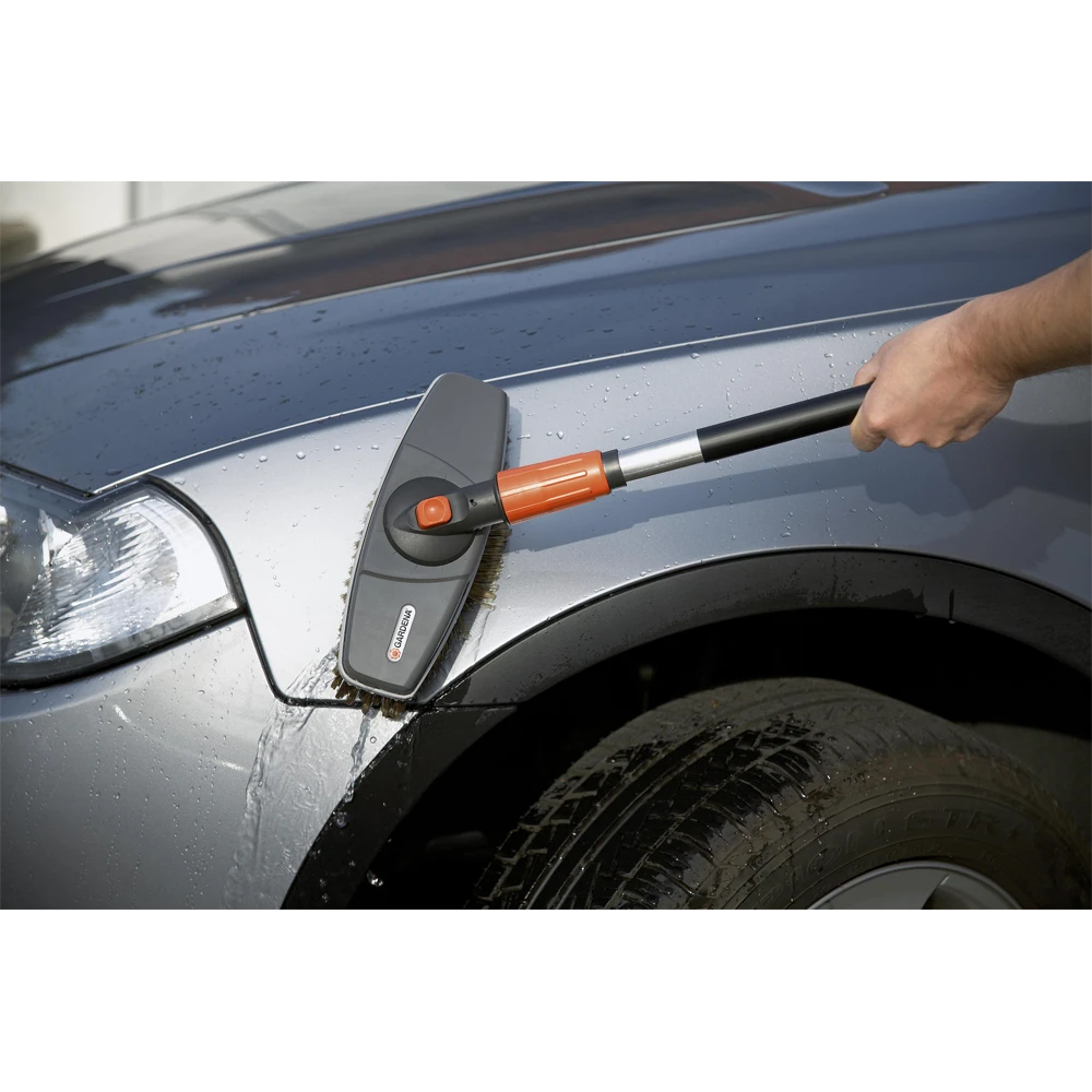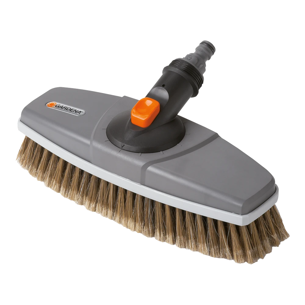 Met de GARDENA wasborstel wordt schoonmaken leuk. De wasborstel kan op het waterleidingnet worden aangesloten met de Original GARDENA System-aansluiting en heeft PET kwaliteitsharen. U kunt kwetsbare oppervlakken, zoals auto’s of caravans, voorzichtig en effectief reinigen. Sluit één van de Original GARDENA Cleansystem waterstelen aan met het aansluitstuk op de wasborstel. De wasborstel kan volledig op het draaistuk in stappen van 30° worden gedraaid en kan moeiteloos worden aangepast aan het oppervlak dat moet worden schoongemaakt. De werkbreedte is 27 cm.